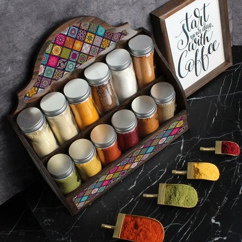 جا ادویه 12 شیشه به همراه استند رنگ گردو یی