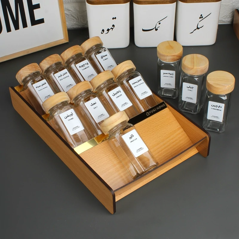 از جنس MDF مقاوم ساخته شده و برای انواع بطری ادویه استاندارد طراحی شده.