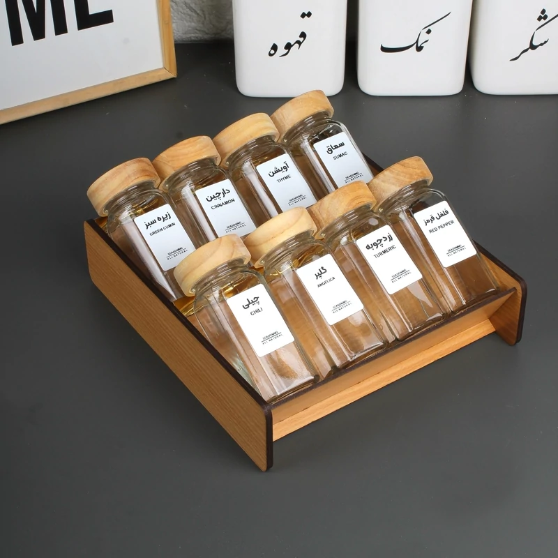 از جنس MDF مقاوم ساخته شده و برای انواع بطری ادویه استاندارد طراحی شده.